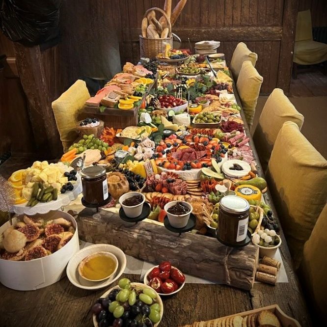 Our catering service provides generous cheese boards and styled displays tailored to your event and guest numbers. We select a balanced range of cheeses with different styles and strengths, presented to encourage sharing and conversation. Suitable for everything from informal gatherings to larger celebrations, our catering is designed to be both visually appealing and easy for guests to enjoy.